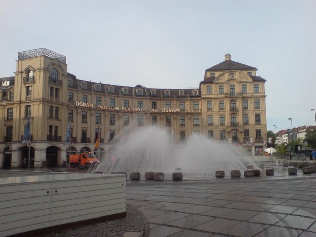 A buszom május 29-én, vasárnap hajnali 5:15-kor tett le a müncheni buszpályaudvaron, és rögtön meg is találtam a hostelemet, 6 előtt már becsekkoltam, de a szobát csak délután 2 után lehetett elfoglalni, úgyhogy rögtön városnézős szabad programmal indítottam a napot. Elindultam a hosteltől a Karlsplatzon át a hosszú bevásárlóutcán, végig a Marienplatzon át, ahol a híres városháza van, egészen az Isar folyóig. Ott megkerestem a koncerthelyszínt, az Isar partján, a zöld fás-bokros susnyás kellős közepén van a Muffatwerk épülete, a Népfürdő mellett. Aztán még sétálgattam a folyóparton egy jó darabon. Nagyon tetszett, hogy ennyi ott a zöld, tiszta dzsindzsás a folyópart, vannak parkok, ahol le lehet ülni meg minden (a városban nincsenek padok, ezt már észrevettem, a nyugati fogyasztói társadalomban nem lehet csak úgy leülni az utcán, üljél be valahová, fogyassz és fizess). Rám nem jellemző módon egyszer sem tévedtem el, simán megtaláltam a pályaudvartól a hostelt, a hosteltől meg a Muffatwerket. Az igazság kedvéért meg kell említenem, hogy ez az egész egyetlen, hosszú, nyílenegyenes útszakasz keresztül a városon, de nem hiszem, hogy ez kisebbíti az érdemeimet.