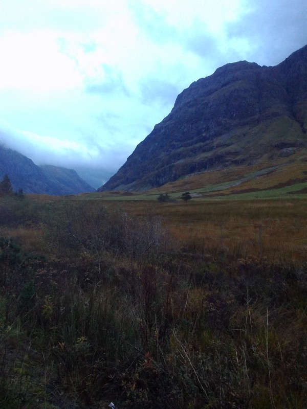 Végül elindulunk hazafelé. 16:00-kor elhaladunk a Ben Nevis, Skócia, s egyben az Egyesült Királyság legmagasabb hegye mellett (1343 méter). 16:35-kor megérkezünk a Coe folyó tölcséréhez, majd a Coe völgy szurdokhoz, vagyis a Glencoe-szurdokhoz. Félreállunk az út mellett a busszal, és kapunk három-négy percet körülnézni és fotózni. Ez a szurdok valóban az egyik legszebb természeti látnivaló a Földön, és megérte még világosban látni, de még jobban megérte volna, ha mondjuk normális a szervezés, és nem húsz percet kalkulálnak Loch Ness-re, és három percet a Glencoe-szurdokra…