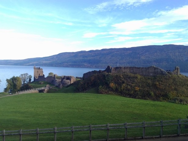 13:45-re érünk a Loch Ness partján fekvő Urquhart-kastély romjaihoz. Idegenvezetőnk a leszállásnál közli, hogy akkor 20 perc múlva(!!!) találkozó ugyanitt a busznál, mert nagyon kell sietnünk vissza, hogy még világos legyen, mikor hazafelé menet keresztülhaladunk a Glencoe-szurdokon… A busztól a várrom eleve pár perc séta, úgyhogy ezt már egyszerűen nem tudjuk komolyan venni, és végül renitens módon egy egész órát eltöltünk a Loch Ness partján.