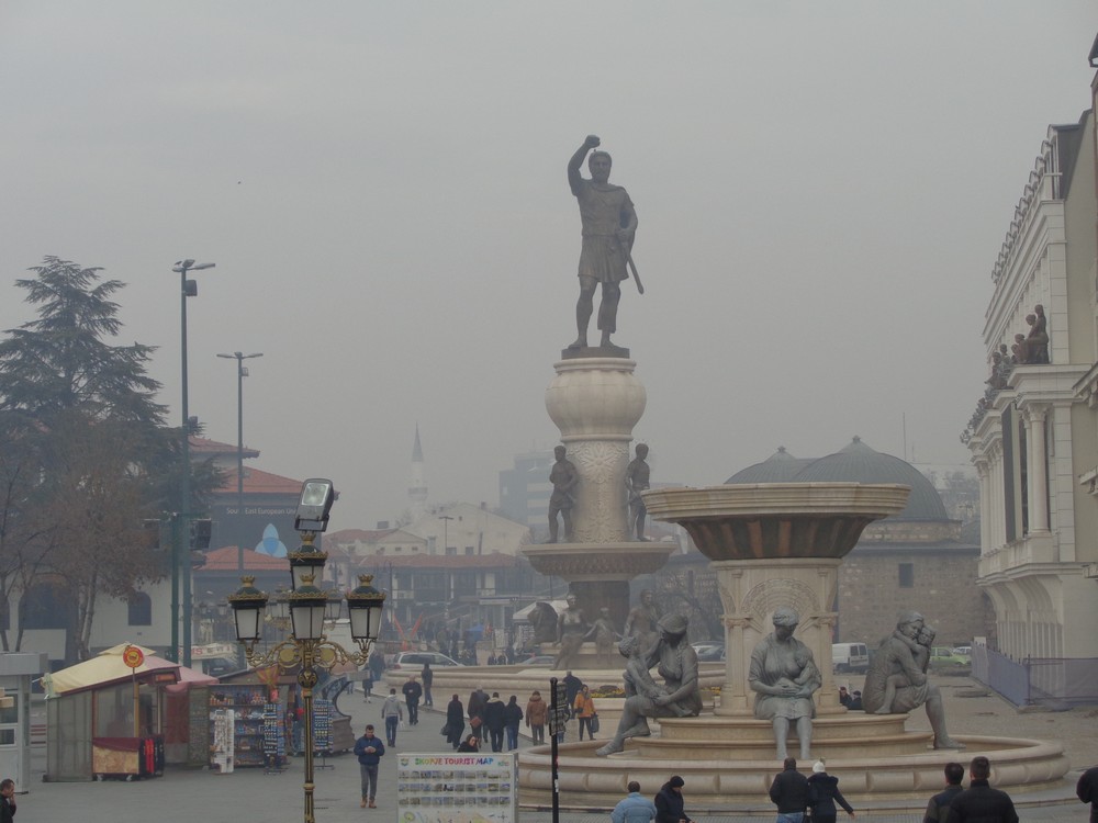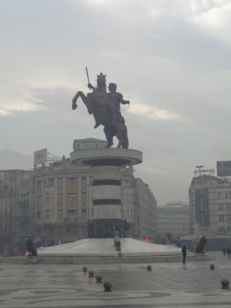 Szkopje jelenlegi városképe egy több szempontból is vitatott és alig néhány évre visszatekintő felújítási-városépítési projekt („Skopje 2014”) eredménye. Most, hogy utánaolvastam, lényegében minden, amit láttunk, ehhez a projekthez köthető. 1963-ban egy földrengés csaknem teljesen elpusztította Szkopjét, s azt követően jellegzetes szocreál városként építették újjá, így létezett évtizedekig. Szkopje nagy újjászületése az előző, Nikola Gruevski vezette jobboldali kormány intézkedései alapján valósult meg, nagyjából 2008 és 2014 között. A cél egyrészt a városkép átalakítása, antikizálása volt, másrészt legalább annyira a nemzeti identitás erősítése (pl. a macedón történelmi alakokat ábrázoló köztéri szobrok zavarba ejtő sokaságával). A projekt keretein belül monumentális, új épületeket emeltek (Archeológiai Múzeum, a Macedón Küzdelem Múzeuma, Porta Macedonia – a macedón diadalív), régieket újítottak fel (Nemzeti Színház, kormányzati épületek), új hidakat építettek (Művészetek Hídja, Civilizációk Hídja), meglévő hidakat újítottak fel (Szabadság-híd), töméntelen mennyiségű köztéri szobrot állítottak, számtalan szökőkutat építettek, parkokat, tereket rendeztek át.