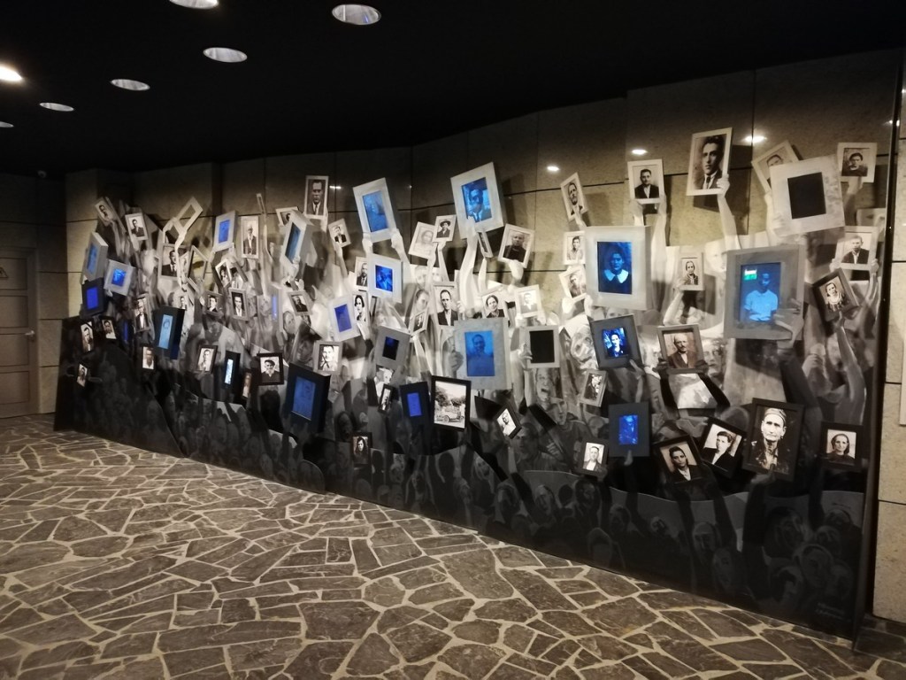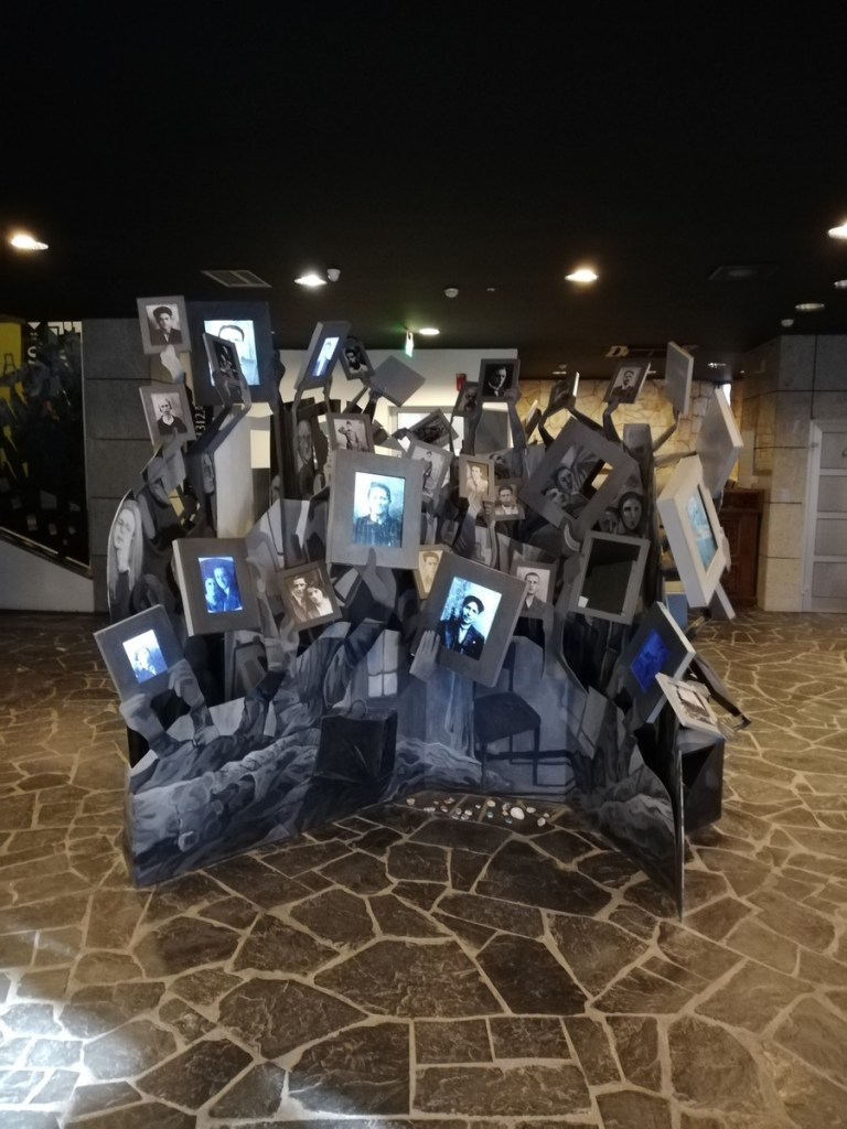 Az emlékközpontban nem szabad fényképezni, csak az előcsarnokban. Ahogy belépünk, a csatolt képeken látható installációk fogadnak. Azt ábrázolják, amint a túlélők a kezükben tartják elveszett szeretteik fényképét keretben, akiket keresnek. Némelyik keretben tükör van, hogy bele tudjuk magunkat képzelni. Utána felmegyünk az emeletre, ahol elkezdődik a balkáni zsidóság történetének bemutatása az antikvitás korától kezdve a spanyol inkvizíción, az Oszmán Birodalmon, a ladino nyelven és kultúrán át egészen a holokausztig és annak következményeiig. Nyilván ez utóbbi szekció a leghangsúlyosabb, de az előzőekből is sok érdekességet tanulhatunk. Például, hogy Izrael területén kívül az első zsinagóga Stobiban, Macedóniában épült.