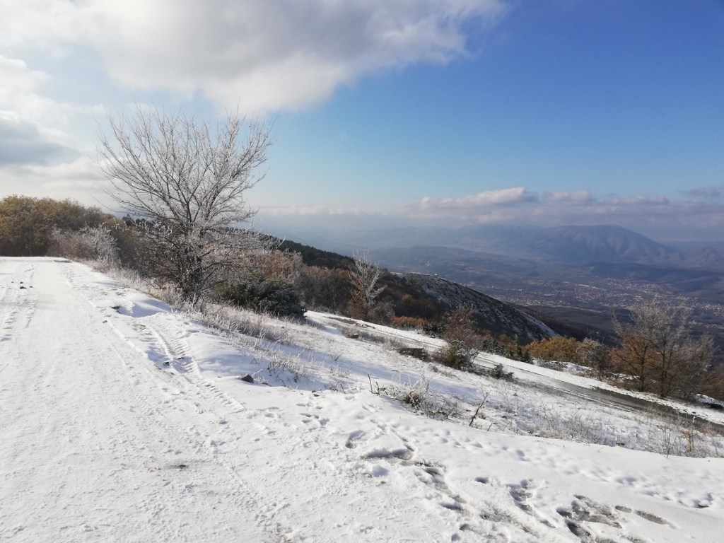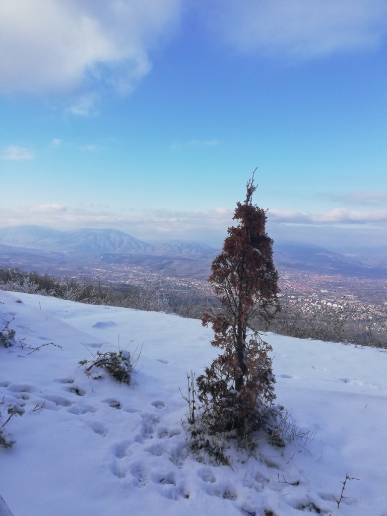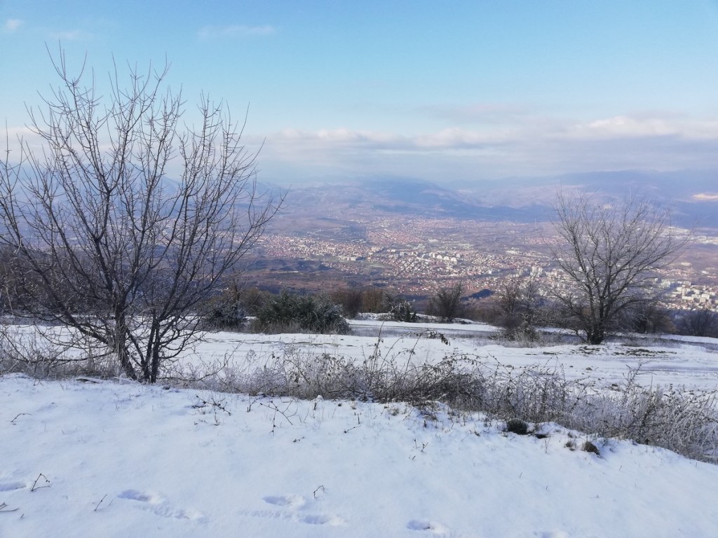 A Vodnón már leesett az első hó. Gyönyörködtem egy kicsit a havas tájban és Szkopje panorámájában, aztán továbbindultunk Vladimirral.