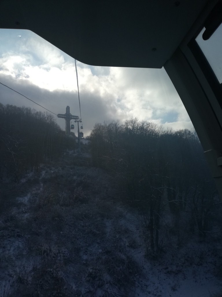 Délután 1-kor kellett találkoznom az idegenvezetővel a megbeszélt helyen. Kiderült, hogy rajtam kívül aznap nem jelentkezett más vendég, ennek ellenére ugyanúgy megtartották nekem, felár nélkül. Idegenvezetőm, Vladimir, kocsival vitt fel a Szkopje fölé magasodó Vodno hegyre, ameddig lehetett, onnan pedig lanovkával a hegytetőre, a Milleniumi Kereszthez.