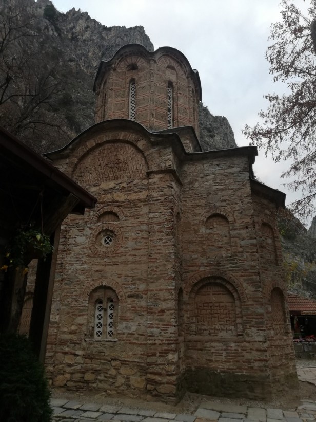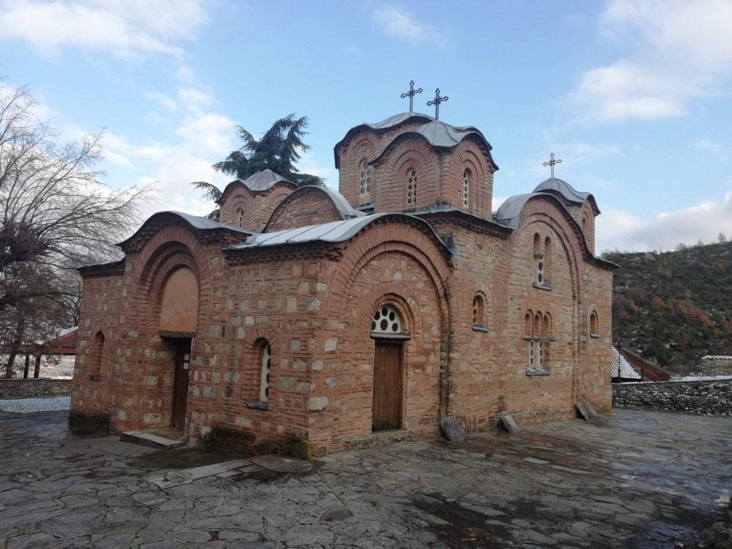 A Vodno hegyen található St. Pantelejmon kolostor egy igazi kis ékkő. Külsőleg olyan, mint a többi régi ortodox templom Macedóniában. Vladimir kiokosított, hogy ez a bizánci stílus: középen nagy kupola (Jézus), plusz körbe 4 kisebb kupola (4 evangelista). Belül jobbról és balról azoknak a freskója, akik építtették az adott templomot. Még beljebb az oltárnál balra Mária a gyermekkel freskó, jobbról annak a freskója, akinek a tiszteletére épült. A kupolán Jézus képe. Ez a standard, és a St. Pantelejmon is így néz ki.