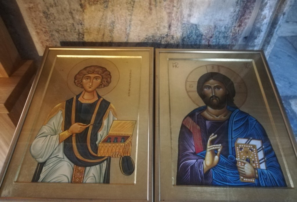A templom névadója St. Pantelejmon, aki a III. és IV. század fordulóján élt. A legenda szerint gyermekkorában megmarta egy mérges kígyó. Az anyja könyörgött istennek, hogy mentse meg a fiát, és Pantelejmon meggyógyult. E csoda miatt felnőttként az emberek gyógyítására tette fel az életét: orvos lett. Ezért a szentképeken állandó attribútuma a jobb kezében tartott szikeszerűség és a bal kezében tartott, orvosi eszközöket tartalmazó doboz.
