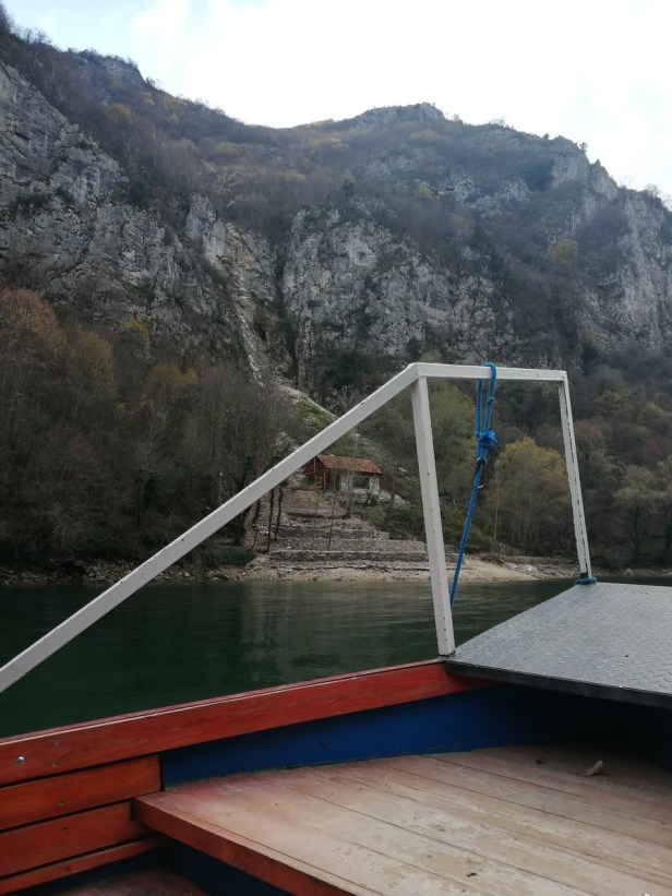 Közvetlenül a kikötőnél van egy hotel és kávézó, valamint a St. András templom. Ezenkívül több más templom is van a kanyon területén. A St. Nikola például fent van, 500 méter magasságban, az is egy jó túra felmenni, és élvezni a panorámát. A hajózás után csatlakoztam Vladimirhoz a kávézóban. Innen vitt vissza a városba, és a Porta Macedoniánál tett ki.