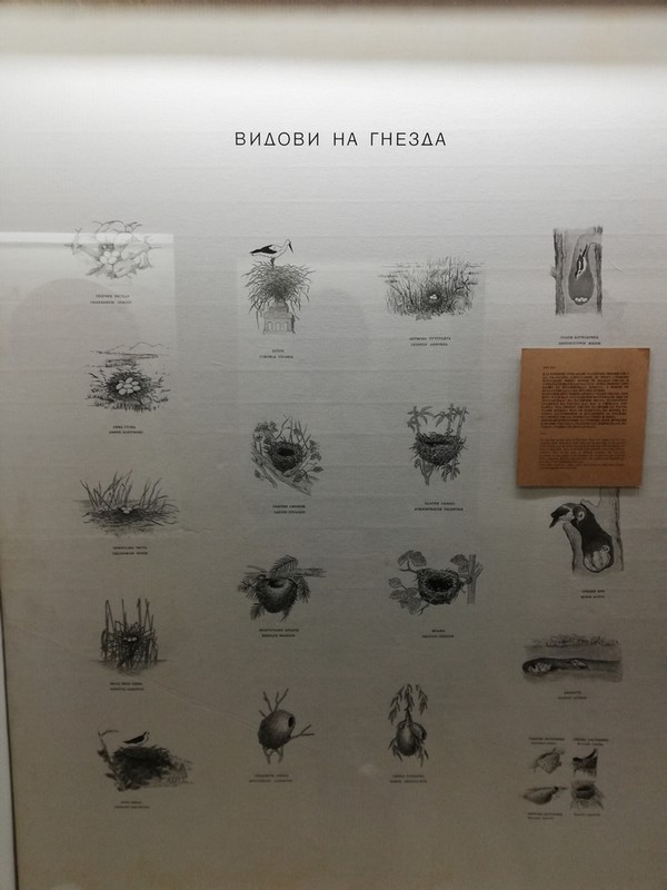 A preparált jószágokon kívül sok szemléltető ábrát is láthatunk. Ezeket nyelvtudás nélkül is meg lehet érteni, és tényleg érdekesek, például rendszertani családfák, vagy hogy hányféleképpen etetik a madarak a fiókáikat, vagy hányféle fészket építenek.